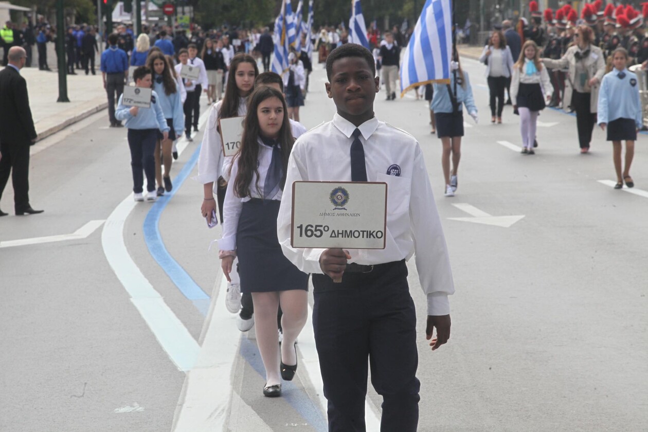 Στην παρέλαση συμμετείχαν 229 σχολεία από το δήμο της Αθήνας. Και ένα σχολείο από τα Καλάβρυτα που άνοιξε την παρέλαση με ένα λάβαρο της Ελληνικής Επανάστασης.