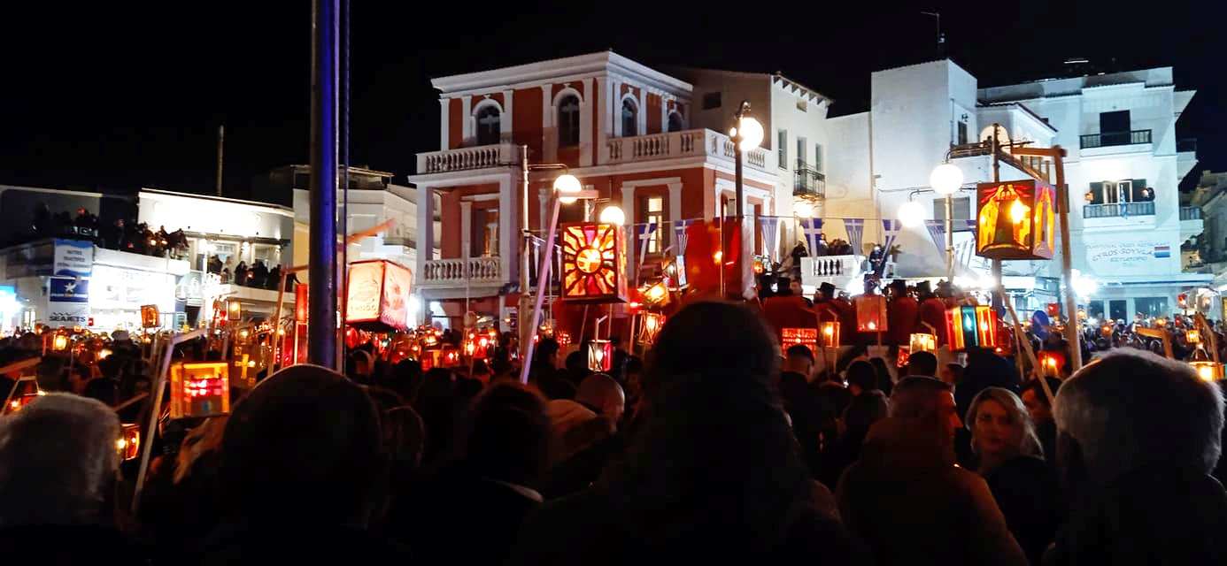 Το εντυπωσιακό έθιμο που βλέπουμε μέχρι σήμερα έχει τις ρίζες του σε εκείνη ακριβώς τη νύχτα. Οι χιλιάδες κάτοικοι του νησιού, μαζί με τους πρόσφυγες της εποχής, έσπευσαν στη Χώρα για να προσκυνήσουν την εικόνα. Επειδή τους πρόλαβε το σκοτάδι, κρατούσαν στα χέρια τους λαδοφάναρα για να βλέπουν τις στράτες και τα μονοπάτια.