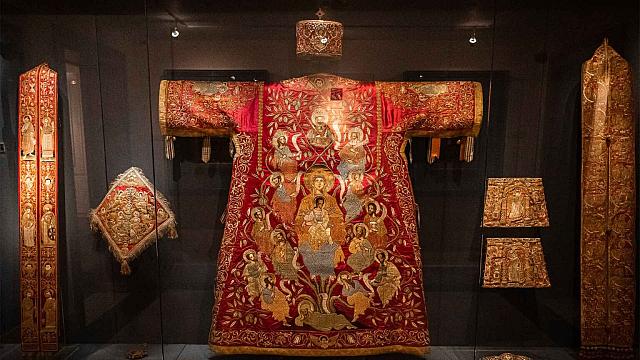 Επίσης, διαθέτει σπάνια Άμφια, επιτραχήλια και καλύμματα ιερών σκευών, εξαιρετικής ραφής.