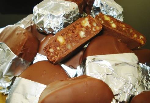Επίσης όταν η σοκολάτα σταθεροποιηθεί, κόψτε την καριόκα σε λεπτές φέτες και σερβίρετε.