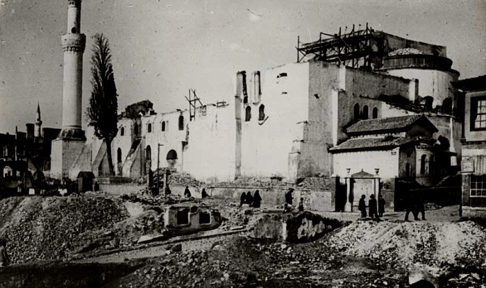 - Αναστήλωση και Τουρκοκρατία: Ο ναός καταστράφηκε από σεισμό το 620 μ.Χ., ξαναχτίστηκε τον 7ο αιώνα, ενώ κατά την Τουρκοκρατία μετατράπηκε σε τζαμί (Kasimiye Camii) από το 1493, με τη χριστιανική λατρεία να περιορίζεται σε ένα μικρό κενοτάφιο. Ο Ναός επανήλθε σε πλήρη χριστιανική λειτουργία το 1912 με την απελευθέρωση της Θεσσαλονίκης.