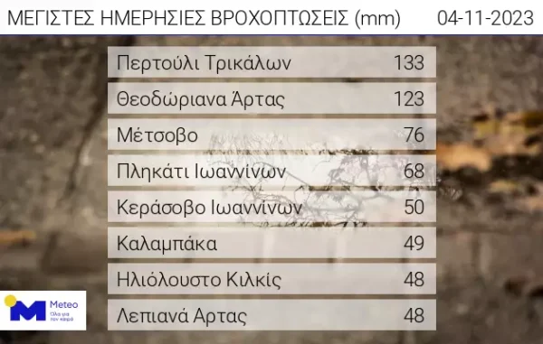 Την ίδια ώρα που η Κρήτη κατέγραφε το 35άρι, σε άλλες γωνιές της Ελλάδας, καταγράφονταν μεγάλα ύψη νερού από την έντονη βροχόπτωση