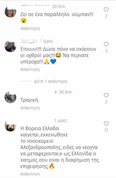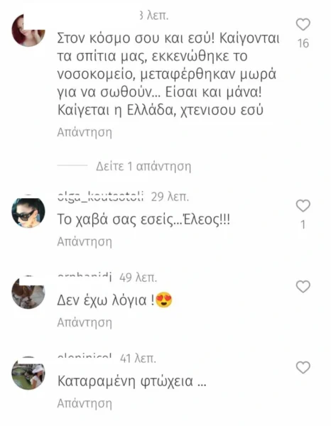 Αν και τα περισσότερα αρνητικά σχόλια έχουν σβηστεί πλέον από την ανάρτηση, οι ακόλουθοι έσπευσαν να εκφράσουν τη δυσαρέσκειά τους: