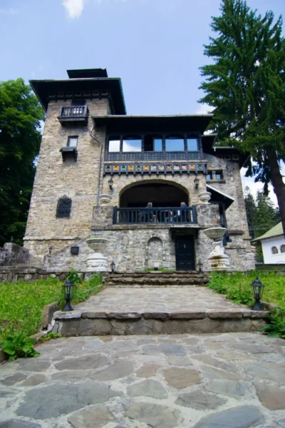 Το «Σπίτι με τα πιάτα» είναι πασίγνωστο στην πόλη Σινάια λόγω της εξωτερικής του διακόσμησης με πορσελάνινα στρογγυλά πιατάκια στην εξωτερική πλευρά και κάτω από τα μεγάλα παράθυρα. Το τουριστικό κατάλυμα αποτελείται από πέντε σουίτες που διακρίνονται για την κομψότητά τους χωρίς να ν αλλοιώνεται ο χαρακτήρας του πύργου.