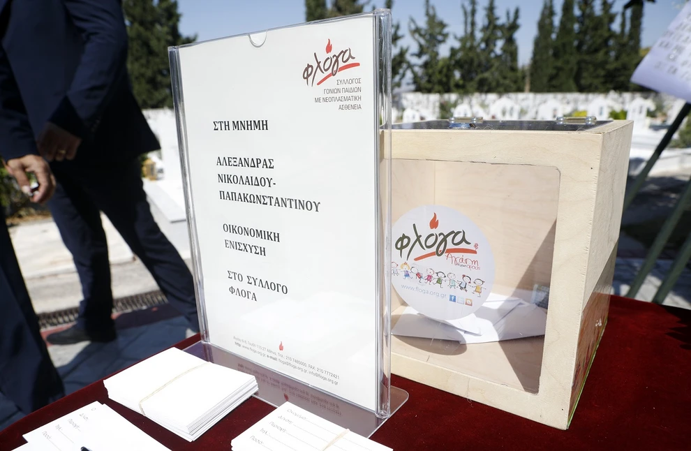 Η τελετή, αν και πένθιμη, ήταν ταυτόχρονα μια στιγμή έκφρασης αγάπης και αλληλεγγύης. Η οικογένεια της εκλιπούσας, αντί για στεφάνια, θέλησε να μετατρέψει τον πόνο σε πράξη ουσίας και ελπίδας. Ζήτησαν από όσους παρευρέθηκαν να ενισχύσουν τον Σύλλογο Γονιών Παιδιών με Νεοπλασματική Ασθένεια «Φλόγα». Για τον σκοπό αυτό, είχε τοποθετηθεί ειδικό κουτί δωρεών στον χώρο της τελετής, μεταφέροντας ένα ισχυρό μήνυμα ότι η ζωή της Αλεξάνδρας Νικολαΐδου θα συνεχίσει να δίνει νόημα, βοηθώντας εκείνους που μάχονται για τη ζωή τους.