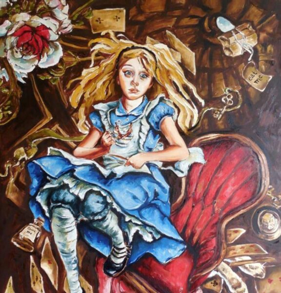 Η μικρή ήταν που τον πίεζε να τους λέει ιστορίες. Από εκείνη εμπνεύστηκε για να γράψει εκείνη ενός κopιτσιού εγκλωβισμένου σε μια μαγική χώρα όπου τα πάντα μπορούν να συμβούν. Γάτες που εξαφανίζονται. Κουνέλια που μιλούν. Καλοντυμένα τραπουλόχαρτα που ζωντανεύουν. Θεόρατα μανιτάρια.