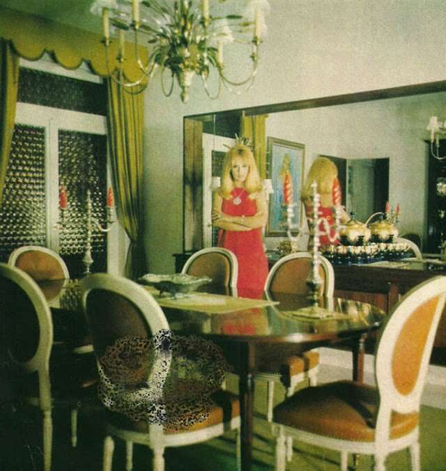 Το διαμέρισμα της Αλίκης επιπλώθηκε σε ένα μοντέρνο για την εποχή στιλ, με κυρίαρχα στοιχεία το σουηδικό ξύλο, τους δερμάτινους καναπέδες και διάφορους νεωτερισμούς. Κεντρικό σημείο του σαλονιού ήταν το μπαρ, μια απαραίτητη προσθήκη στα αθηναϊκά νοικοκυριά της εποχής. Το κρεβάτι με τη γαλάζια ταπετσαρία ήταν πιο κλασικό σε σχέση με την υπόλοιπη επίπλωση, θυμίζοντας μάλιστα τη γαλάζια κρεβατοκάμαρα της Βασίλισσας Ελισάβετ. Χρυσοποίκιλτοι καθρέφτες, ασημένια κηροπήγια, λευκές μοκέτες, πίνακες του Βασιλείου, γυάλινα τραπέζια και μια σειρά από επίχρυσους Βούδες, που είχαν επικριθεί ως κακόγουστοι από πολλούς επισκέπτες, συμπλήρωναν τη διακόσμηση.