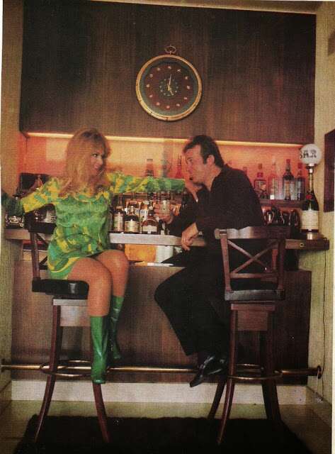 Όπως και να έχει, το σπίτι της Αλίκης επιπλώθηκε σε μοντέρνο για την εποχή στιλ, όλο σουηδικό ξύλο, δερμάτινους καναπέδες και νεωτερισμούς. Centerpiece το μπαρ, που την εποχή εκείνη ήταν απαραίτητη προσθήκη στα αθηναϊκά νοικοκυριά, ενώ το κρεβάτι με τη γαλάζια ταπετσαρία ήταν μάλλον πιο κλασικό από την υπόλοιπη επίπλωση και παρέπεμπε στην επίσης γαλάζια κρεβατοκάμαρα της βασίλισσας Ελισσάβετ…