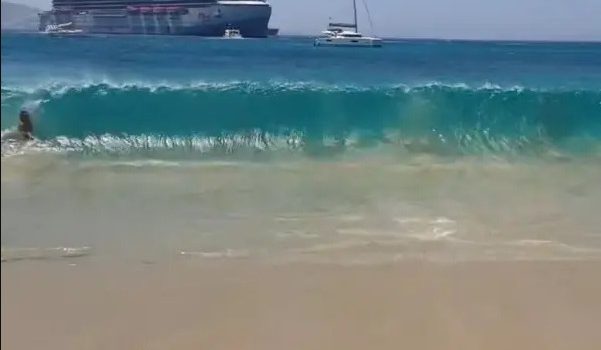 Το περιστατικό συνέβη στην παραλία του Αγίου Στεφάνου. Σύμφωνα με ανακοίνωση του Λιμενικού Σώματος, τα μεγάλα κύματα παρέσυραν ξαπλώστρες και προσωπικά αντικείμενα των λουόμενων στην παραλία.