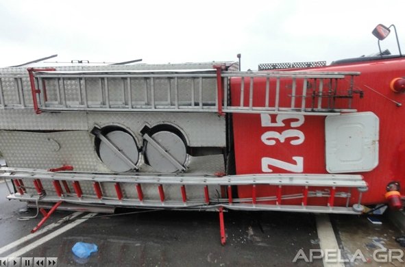 Το πυροσβεστικό όχημα με γερανό απομακρύνθηκε από το σημείο για τη μεταφορά του στην Πάτρα.