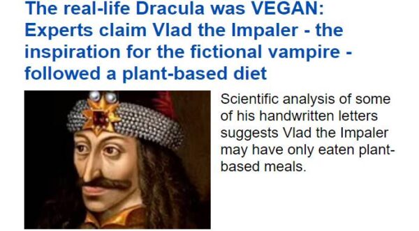 Νέα στοιχεία προκύπτουν για τον Κόμη Δράκουλα με βάση τα στοιχεία που συγκέντρωσαν ερευνητές από το Πανεπιστήμιο της Κατάνια. Όσο και αν αποτελεί έκπληξη, ο αιμοδιψής Βλαντ ενδέχεται να ήταν βίγκαν!