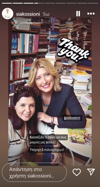 Η Σία Κοσιώνη παραβρέθηκε πρόσφατα σε ένα γνωστό βιβλιοπωλείο στο Νέο Ψυχικό, όπου υπέγραψε αντίτυπα του βιβλίου της για αναγνώστες και φίλους-συνεργάτες που είχαν την καλοσύνη να παρευρεθούν.
