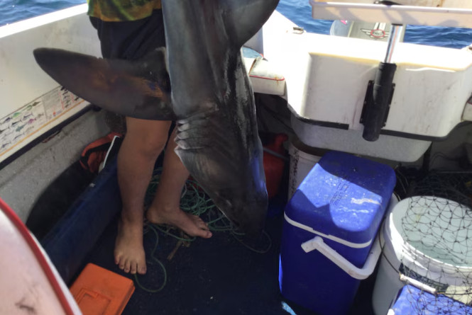Ο 16χρονος τον έπιασε από την ουρά και τον ανασήκωσε. Ο καρχαρίας τότε πετάχτηκε και του δάγκωσε το πόδι με τον πατέρα του να ορμά για να απεγκλωβίσει έγκαιρα το πόδι του γιου του από τα σαγόνια του αρπακτικού ψαριού.