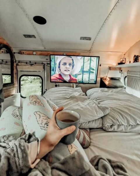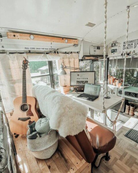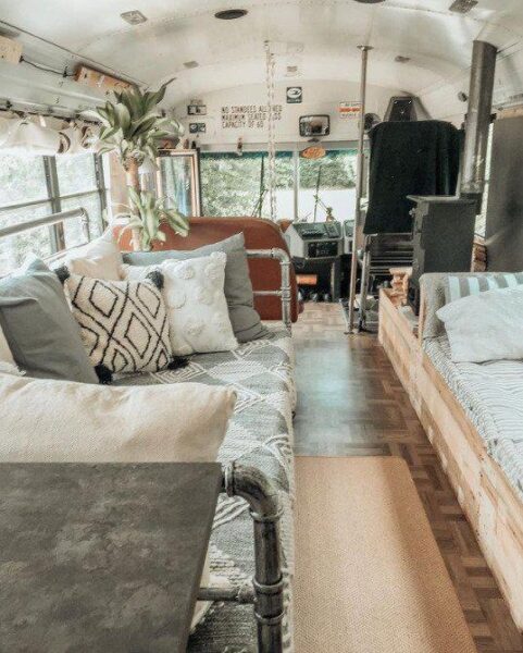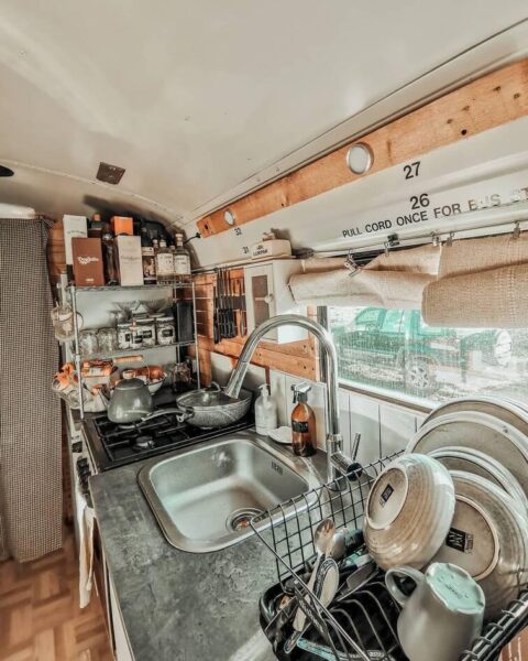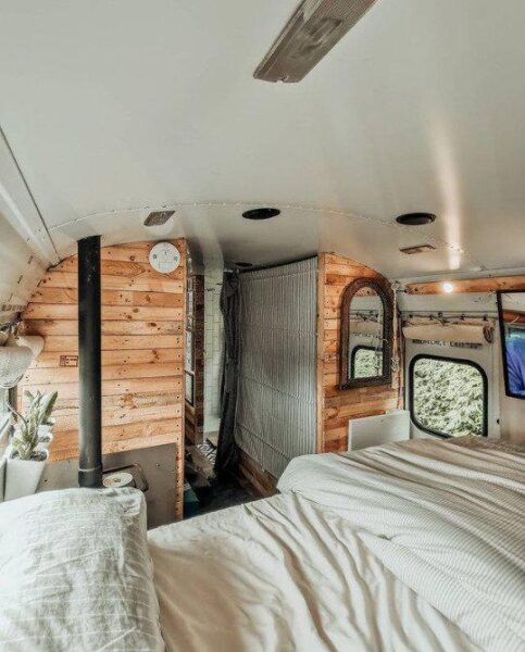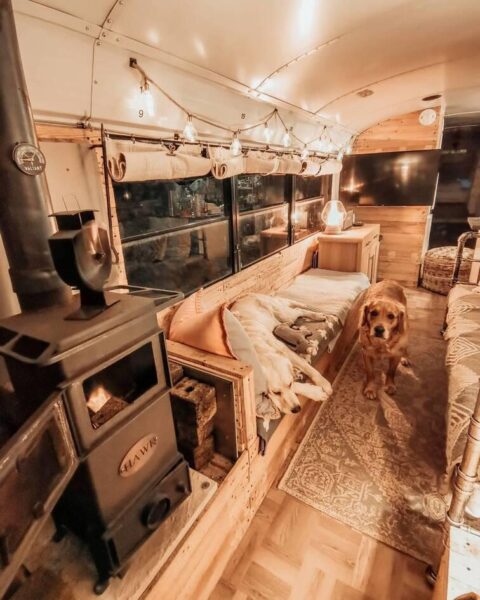 Αν και μόλις 28 τετραγωνικά μέτρα, το λεωφορείο Otto the skoolie, έχει ολοκληρωμένη κουζίνα και μπάνιο, κρεβατοκάμαρα, πλυντήριο ρούχων και τζάκι! Επίσης στην ευρύχωρη αυλή του, το ζευγάρι έχει τοποθετήσει τζακούζι και ψησταριές μπάρμπεκιου. Η Ailsa, ο Paul και τα δυο τους σκυλάκια έχουν πραγματικά ότι θέλουν σε αυτό το λιλιπούτιο δημιούργημα και μάλιστα είναι αρκετά γνωστοί στα social media για αυτό τους το δημιούργημα.