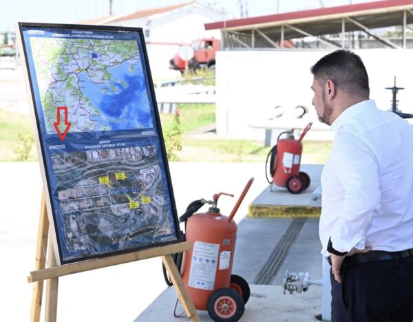 Πρόκειται για την αποθήκη καυσίμων που βρίσκεται στη Θεσσαλονίκη και την επισκέφτηκε σήμερα, στο πλαίσιο των επιθεωρήσεων και όπως βλέπουμε στην παρακάτω φωτογραφία που μοιράστηκε σε όλα τα ΜΜΕ αναγράφεται ξεκάθαρα η λέξη «ΑΠΟΡΡΗΤΟ».