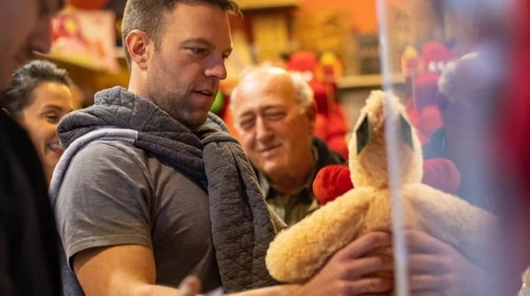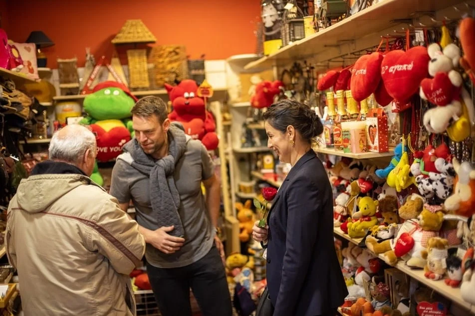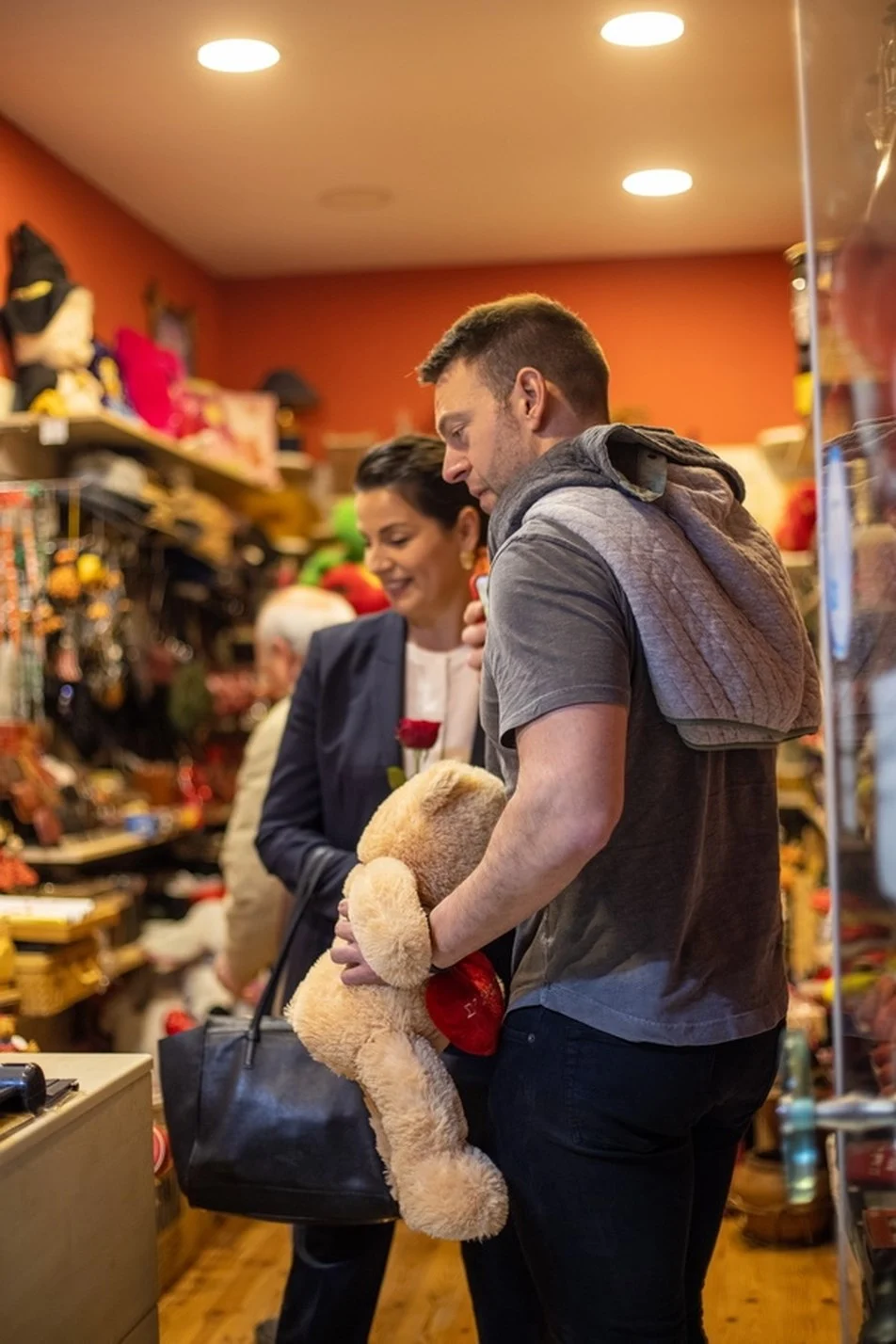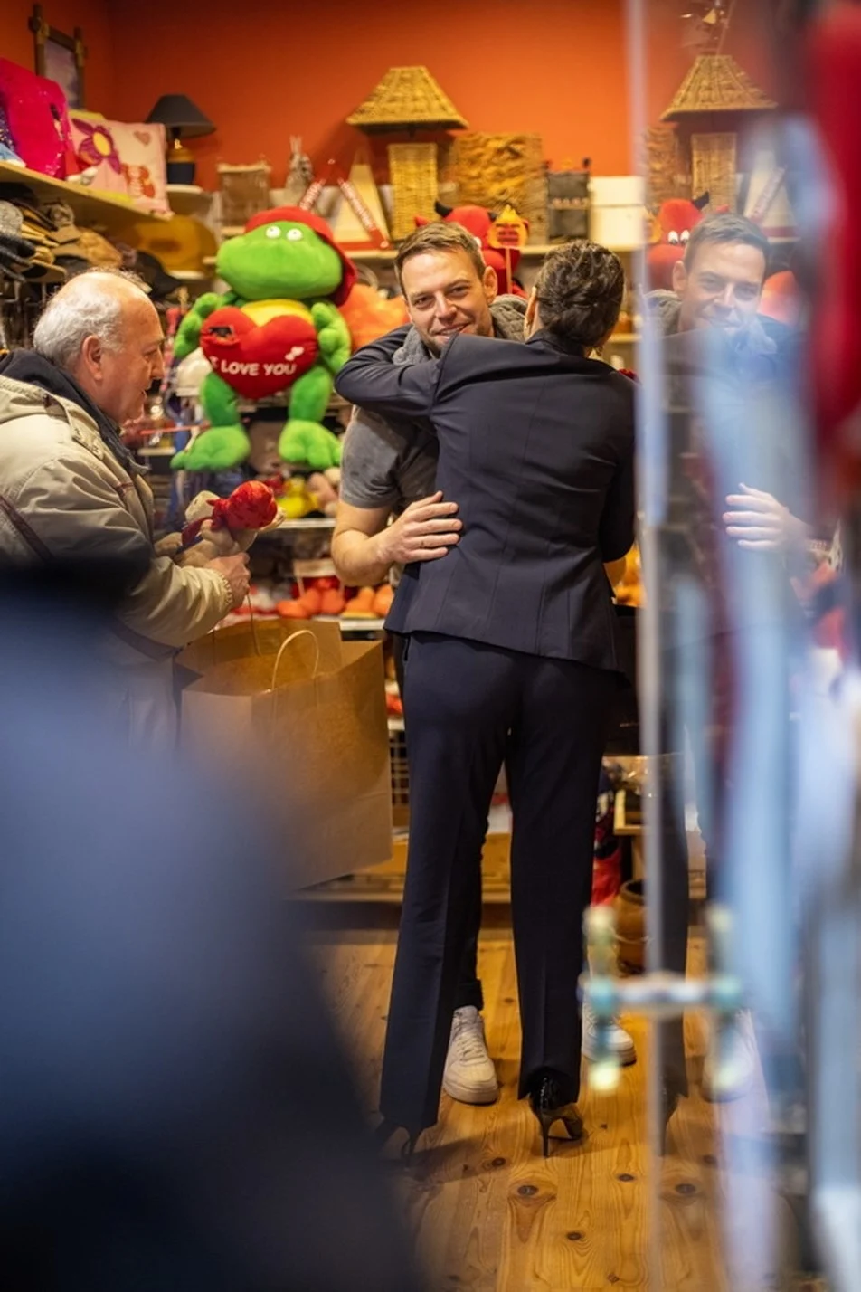 Λίγο πριν φτάσει, ξέφυγε από την παρέα, μπήκε σε μαγαζάκι με είδη δώρων και αγόρασε, όπως κατέγραψε το trikalavoice.gr ένα αρκουδάκι ενόψει…. Αγίου Βαλεντίνου.