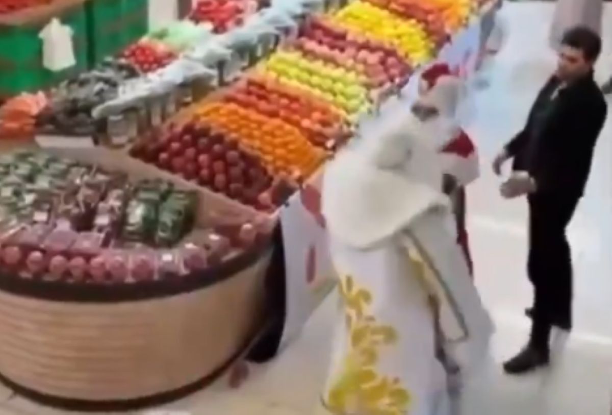Η διαμάχη, η οποία καταγράφηκε σε βίντεο που γρήγορα έγινε viral στα μέσα κοινωνικής δικτύωσης, ξεκίνησε να εκτυλίσσεται κοντά στο τμήμα των φρούτων και λαχανικών. Το «εορταστικό δίδυμο», αντί να μοιράζει δώρα, άρχισε να σπρώχνεται και να ανταλλάσσει χτυπήματα, αναστατώνοντας την αγοραστική εμπειρία των πελατών.