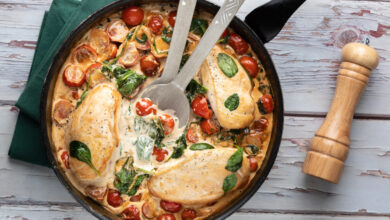Ζουμερό κοτόπουλο, φρέσκα ντοματίνια και βασιλικός. Με μία δροσερή σαλάτα για συνοδευτικό, έχετε μέσα σε λίγα λεπτά ένα υγιεινό και…