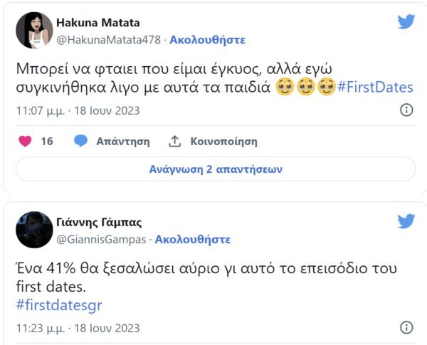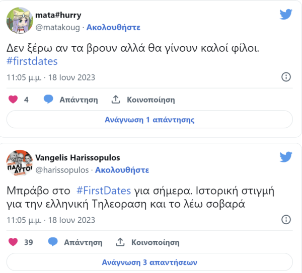 — First Dates GR (@FirstDatesGR) June 18, 2023