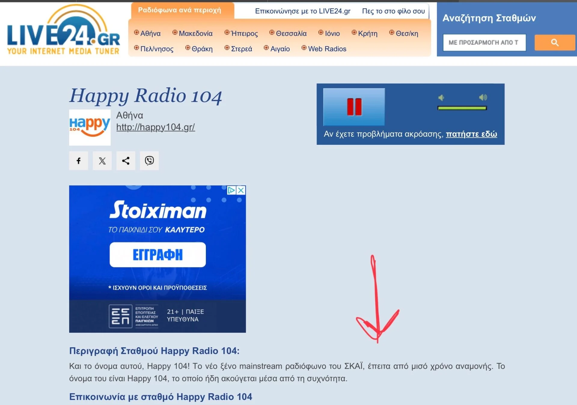Ενώ στην πλατφόρμα ζωντανής μετάδοσης του προγράμματος της συγκεκριμένης συχνότητας, αναφέρεται ξεκάθαρα ότι εκπέμπει σταθμός συμφεροντων ΣΚΑΪ.