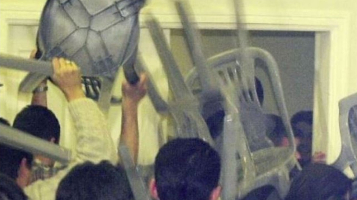 Η κατάσταση εκτραχύνθηκε ραγδαία. Μέσα σε λίγα λεπτά, η αντιπαράθεση μετατράπηκε σε χάος, με εξαγριωμένους παρευρισκόμενους να αναποδογυρίζουν τραπέζια και καρέκλες. Ο πανικός εξαπλώθηκε στον χώρο της γιορτής, αναγκάζοντας την ορχήστρα να σταματήσει να παίζει και να αποχωρήσει εσπευσμένα εν μέσω της αναταραχής. Παρά τις προσπάθειες κάποιων πιο ψύχραιμων παρευρισκομένων να επιβάλουν την ηρεμία, η κατάσταση ήταν πλέον μη αναστρέψιμη.