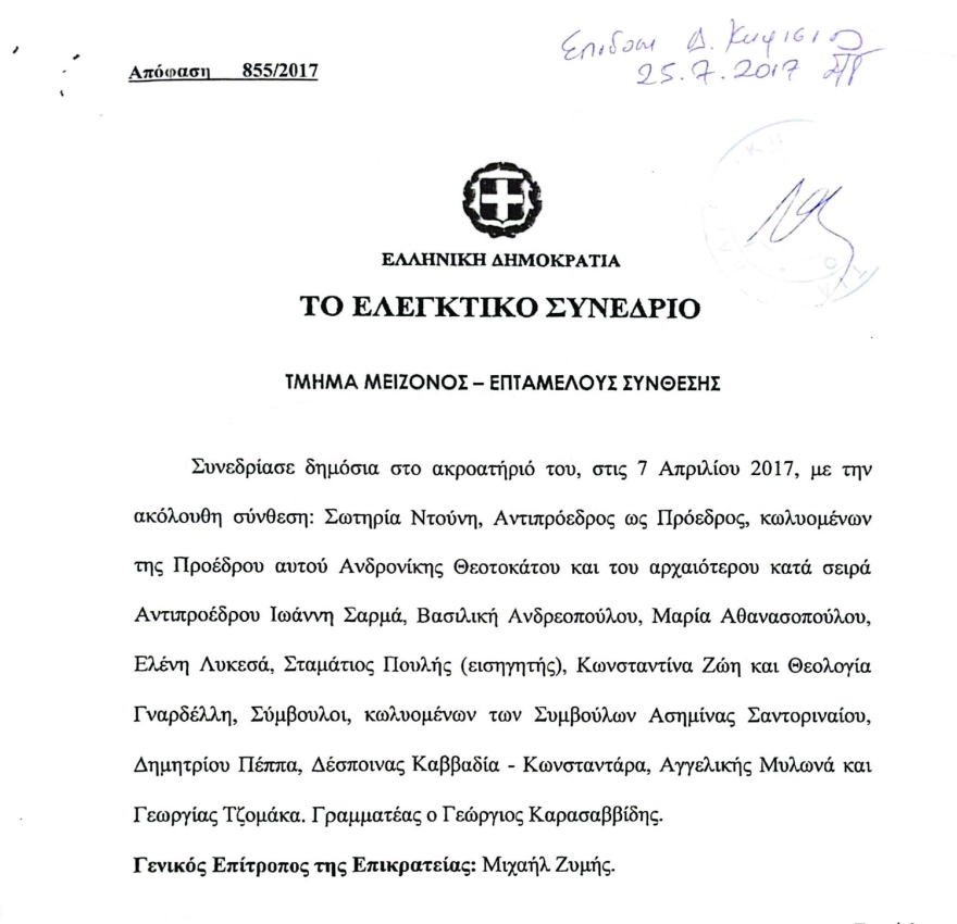 «Νομικά, ηθικά και πολιτικά, το ζήτημα είναι απολύτως σαφές. Ας μπουν στον κόπο, έστω και τώρα, οι ενδιαφερόμενοι να διαβάσουν την απόφαση 855/2017 από τη Μείζονα Σύνθεση του Ελεγκτικού Συνεδρίου. Συνεχίζω δικαστικά» καταλήγει.