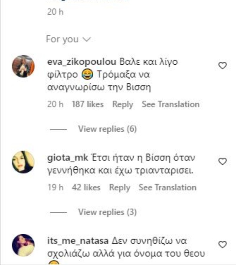 Πιο αναλυτικά, τα σχόλια κάτω από την φωτογραφία που ανήρτησε η ηθοποιός ήταν πολλά και αρκετά εξ αυτών αρνητικά…