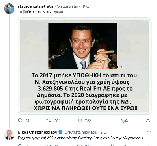 Κάτι αντίστοιχο έγινε λοιπόν και χθες, με μία φωτογραφία που κυκλοφόρησε στο twitter. Την οποία ο Χατζηνικολάου δεν γινόταν να μην σχολιάσει, αφού επρόκειτο για ένα χυδαίο ψέμα.