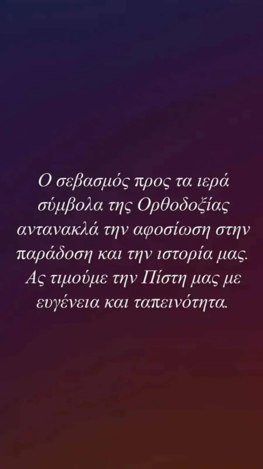 «Ο σεβασμός προς τα ιερά σύμβολα της ορθοδοξίας αντανακλά την αφοσίωση στην παράδοση και την ιστορία μας. Ας θυμηθούμε την πίστη μας με ευγένεια και ταπεινότητα».