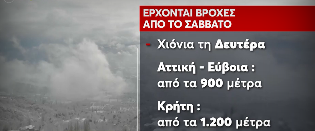 Στην Αττική και την Εύβοια, τα χιόνια θα εμφανιστούν σε υψόμετρο άνω των 900 μέτρων. Στην Κρήτη, οι χιονοπτώσεις αναμένονται σε υψόμετρα πάνω από 1200 μέτρα, με περιοχές όπως τα Ανώγεια να δέχονται πιθανό χιόνοστρωμα.