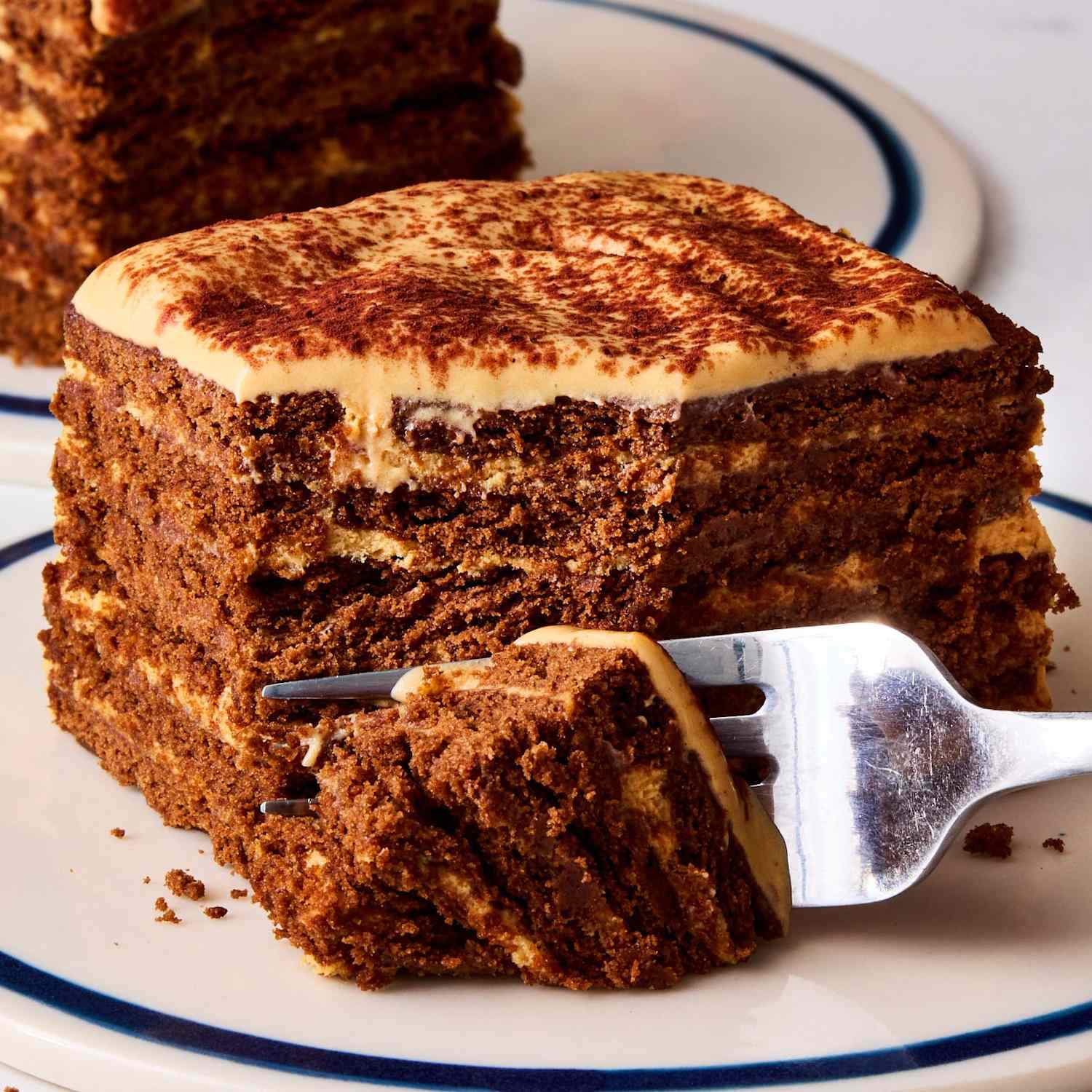 Ψύξη: Το γλυκό καλύπτεται και τοποθετείται στο ψυγείο για τουλάχιστον 2 ώρες ή ιδανικά όλη τη νύχτα. Αυτή η διαδικασία είναι κρίσιμη. Καθώς τα μπισκότα μαλακώνουν και η τούρτα σφίγγει.