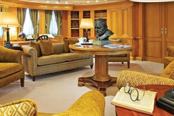 Για τον εαυτό του ο Ωνάσης είχε κρατήσει μια σουίτα τεσσάρων δωματίων, με μπανιέρα από μπλε μάρμαρο Σιένας, απομίμηση λουτρού από μινωικό ανάκτορο. Μάλιστα, ο καπετάνιος της θαλαμηγού Γιώργος Ζαχαρίας, που εργαζόταν στο σκάφος για δέκα χρόνια, είχε εξομολογηθεί παλαιότερα στην «Εspresso»: «O Τσόρτσιλ ήταν ένας πολύ παράξενος άνθρωπος. Εξαιτίας του βάρους του, την περισσότερη ώρα καθόταν σε μια καρέκλα και έτρωγε, κοιμόταν ή έπινε. Είχε αδειάσει ολόκληρα μπουκάλια με ουίσκι ενώ ήταν πάνω στο πλοίο. Η σταρ, όμως, που δεν θα ξεχάσω ποτέ ήταν η Γκρέτα Γκάρμπο!