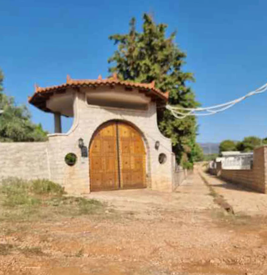 Πρόκειται για μια διώροφη μονοκατοικία επιφάνειας 259,44 τ.μ., με υπόγειο επιφάνειας 251,40 τ.μ. και πισίνα 136 τ.μ. , ανεγερθείσα βάσει οικοδομικής άδειας του 2008, επί οικοπέδου (αγρού με ελαιόδεντρα), επιφάνειας 7.031,05 τ.μ., που βρίσκεται επί δύο αγροτικών οδών, στη θέση Λεκανέζα στη Μάνδρα Αττικής.