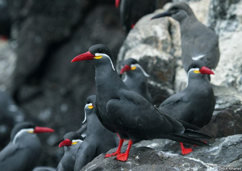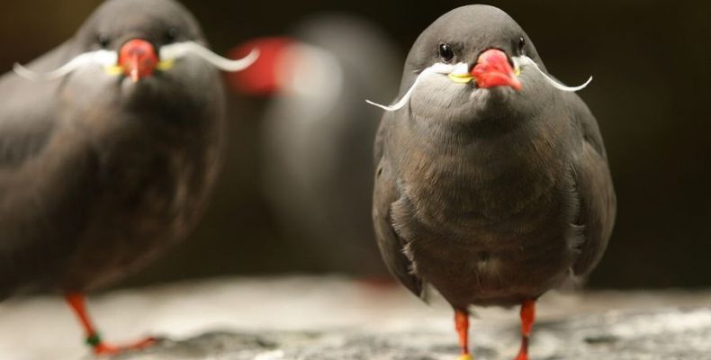 Το χρώμα τους είναι σκούρο γκρι ενώ το ράμφος και τα πόδια τους είναι πορτοκαλί και κόκκινα. Το πιο ιδιαίτερο χαρακτηριστικό βέβαια των πουλιών Ίνκα Τερν είναι το «μουστάκι» τους. Που βρίσκεται κάτω από τα μάτια των πτηνών και έχει λευκό χρώμα. Το «μουστάκι» εκτείνεται προς το πίσω μέρος του κεφαλιού τους σχηματίζοντας συνήθως μικρή κλίση.
