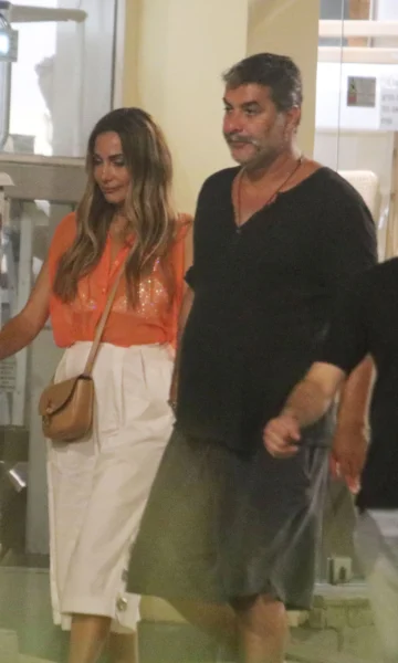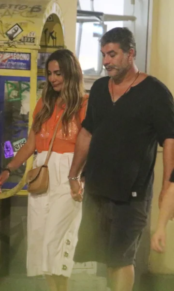 Συγκεκριμένα ο κύριος Μπισμπίκης είναι χαλαρά ντυμένος ενώ η Δέσποινα Βανδή είναι όπως πάντα απαστράπτουσα και αψεγάδιαστη.