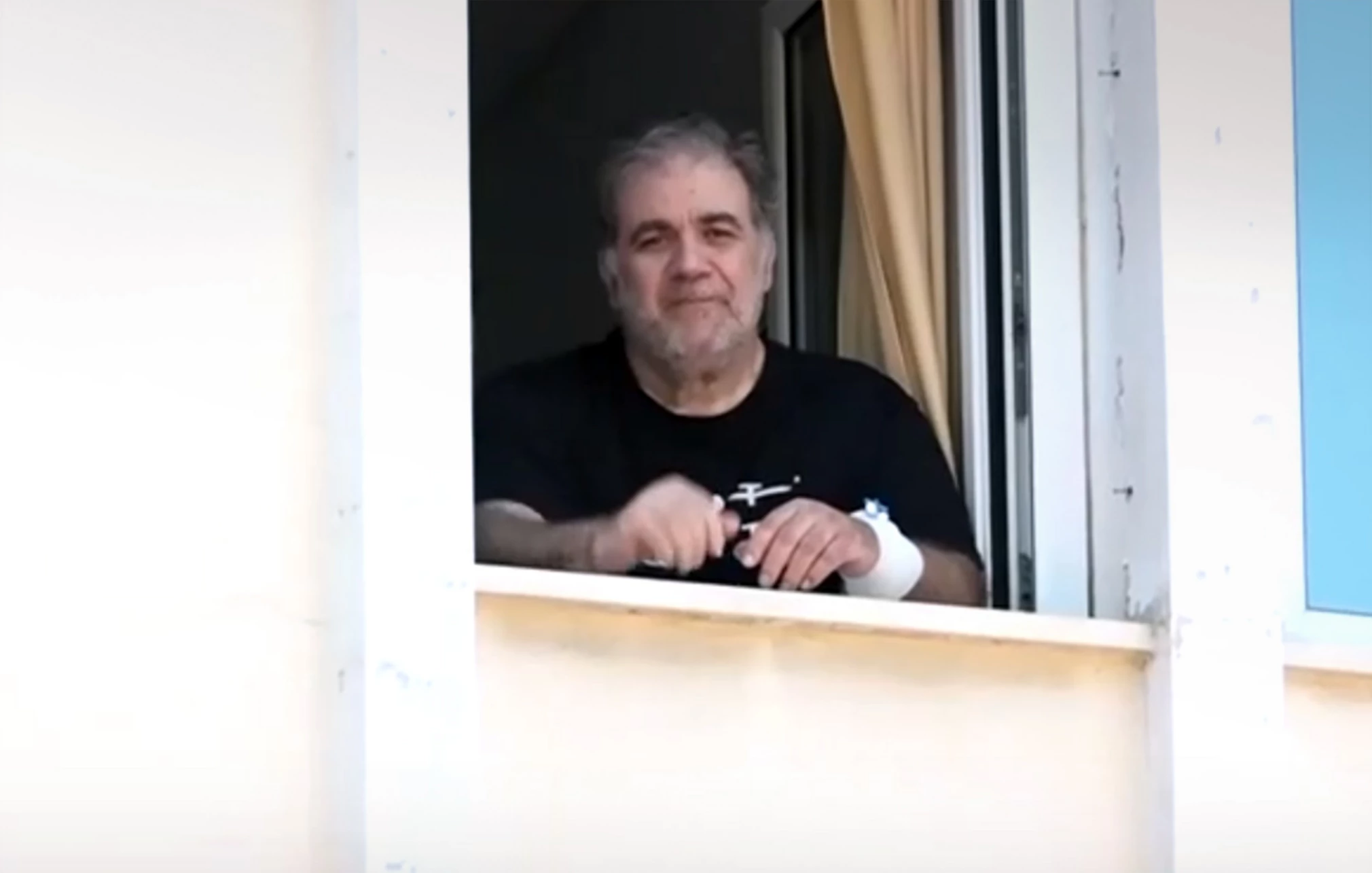 Ο τηλεοπτικός φακός κατέγραψε τις πρώτες εικόνες του Δημήτρη Σταρόβα από το παράθυρο του δωματίου του στο νοσοκομείο. Όπου νοσηλευόταν τις προηγούμενες ημέρες. Με συγκίνηση στο βλέμμα, έστειλε τους χαιρετισμούς του στο κοινό, φορώντας μια μπλούζα με το μήνυμα: «Μην τα παρατάς».