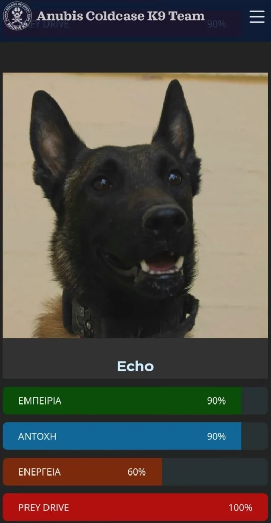 «Aυτός είναι ο Echo της ομάδας Anubis Coldcase K9 Team, που εντόπισε τον δολοφονημένο άντρα στο Μεσολόγγι. Από χτες μύρισε κάτι και παρόλο που το πτώμα ήταν μέσα στο νερό, κάτι που έκανε δυσκολότερο τον εντοπισμό του, επέμεινε. Και τα κατάφερε. Ο τύπος που λέγεται πως πριν δολοφονήσει άνθρωπο είχε δολοφονήσει τόσα σκυλιά, έμελλε να καταδικαστεί από σκύλο», αναφέρει χρήστης των social media ανεβάζοντας φωτογραφία του Echo.