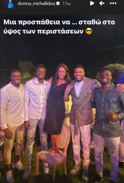 Πλήθος κόσμου παρευρέθηκε στην στο φιλανθρωπικό gala που διοργάνωσε ο Γιάννης Αντετοκούνμπο με τα αδέρφια του στο γκολφ της Γλυφάδας. Μεταξύ αυτών ήταν και η Δόμνα Μιχαηλίδου. Η υφυπουργός παιδείας ήταν παρούσα στην εκδήλωση και μάλιστα θέλησε να φωτογραφηθεί με τα τέσσερα αδέρφια.