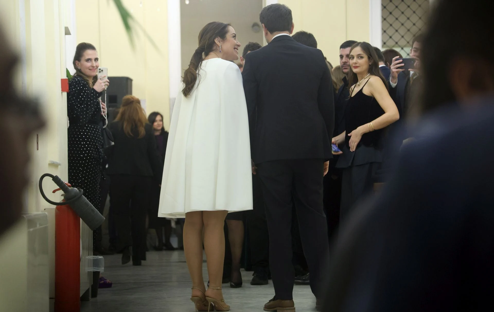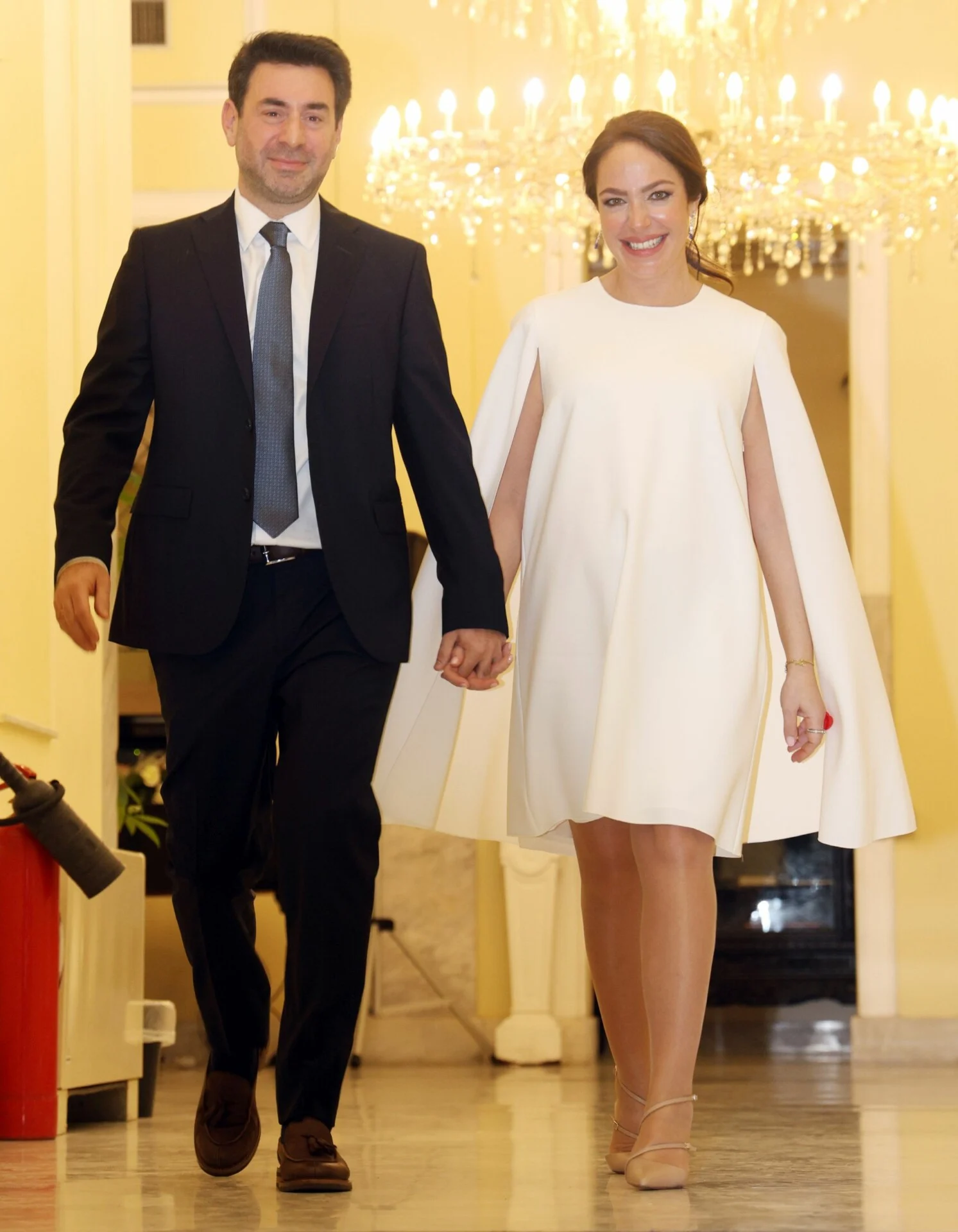Το ζευγάρι, ευδιάθετο και χαμογελαστό, έφτασε χέρι-χέρι στη Δημοτική Πινακοθήκη. Όπου ο δήμαρχος Γιάννης Μώραλης τέλεσε την τελετή.