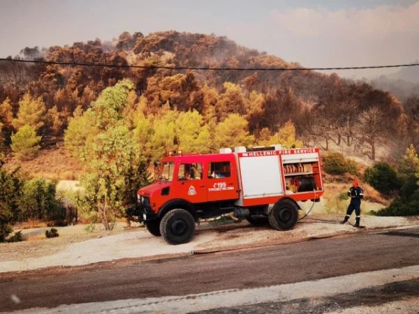 Η φωτιά ανεβαίνει ξανά στο βουνό, ενώ στην περιοχή πνέουν ισχυροί άνεμοι 7 μποφόρ. Πλέον, οι φλόγες φτάνουν στο σημείο που ξεκινά ο Εθνικός Δρυμός.