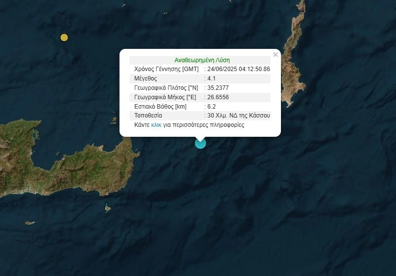 Δυνατός σεισμός πριν από λίγο στην Κάσο με πάνω από 4 Ρίχτερ να γίνεται αισθητός σε πολλές περιοχές