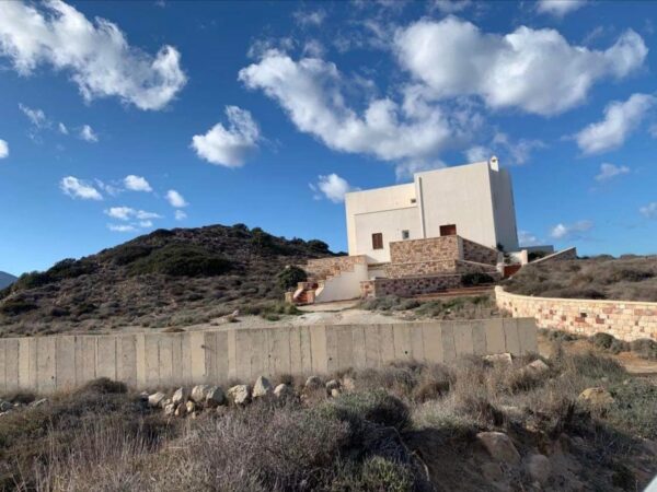 Το ακίνητο στη Μήλο είναι στη θέση Μαύρα Γκρεμνά του νησιού. Περιλαμβάνει ένα αγροτεμάχιο επιφάνειας 370 τ.μ., συν μια κατοικία, η οποία αποτελείται από ισόγειο επιφάνειας 110,96 τ.μ. Στο ακίνητο υπάρχει ημιυπαίθριος χώρος 17,1 τ.μ., πρώτο όροφο επιφάνειας 88,86 τ.μ. και υπόγειο 40,56 τ.μ..