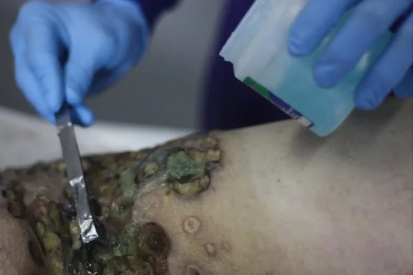 «Αυτή είναι μια ασυνήθιστη περίπτωση», λέει ο Alexandre κοιτώντας το πτώμα. Ένα μέρος του ποδιού είναι σαπισμένο˙ όπως φαίνεται, πέθανε από καρκίνο. Αφού πλύνει το σώμα, ο Alexandre χρησιμοποιεί διάλυµα φορμόλης για να διακόψει τη διαδικασία αποσύνθεσης. Δεν διορθώνει τίποτα – απλώς καλύπτει τη σήψη και τις μυρωδιές ώστε να μη χειροτερεύσει η κατάσταση του σώματος.