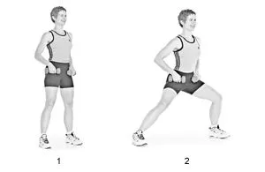 -Κάντε ένα μεγάλο βήμα προς τα αριστερά και λυγίστε το αριστερό γόνατο μέχρι ο μηρός σας είναι παράλληλα με το πάτωμα, κρατώντας ταυτόχρονα σε έκταση το δεξί σας πόδι. Μείνετε εκεί για 2″ και στη συνέχεια επιστρέψτε στην αρχική θέση και επαναλάβετε την κίνηση στη δεξιά πλευρά.