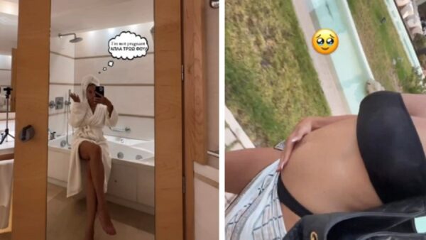 Σε ένα από τα βίντεο που δημοσίευσε, τη βλέπουμε να κρατά την κοιλιά της και να λέει στον σύντροφό της, Δημήτρη Αλεξάνδρου… «Αγάπη θα το πεις εσύ ή να το πω εγώ;».