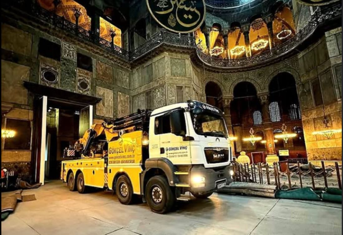Η δημοσιοποίηση νέων εικόνων που δείχνουν βαρέα μηχανήματα στην Αγία Σοφία προκάλεσε έντονο προβληματισμό στην επιστημονική κοινότητα και ισχυρές αντιδράσεις διεθνώς. Φορτηγό-γερανός εντοπίστηκε να εισέρχεται από την Αυτοκρατορική Πύλη και να σταθμεύει πάνω σε πρόχειρα προστατευτικά πάνελ, γεγονός που εγείρει ανησυχίες για την ασφάλεια ενός μνημείου ηλικίας 1.500 ετών.