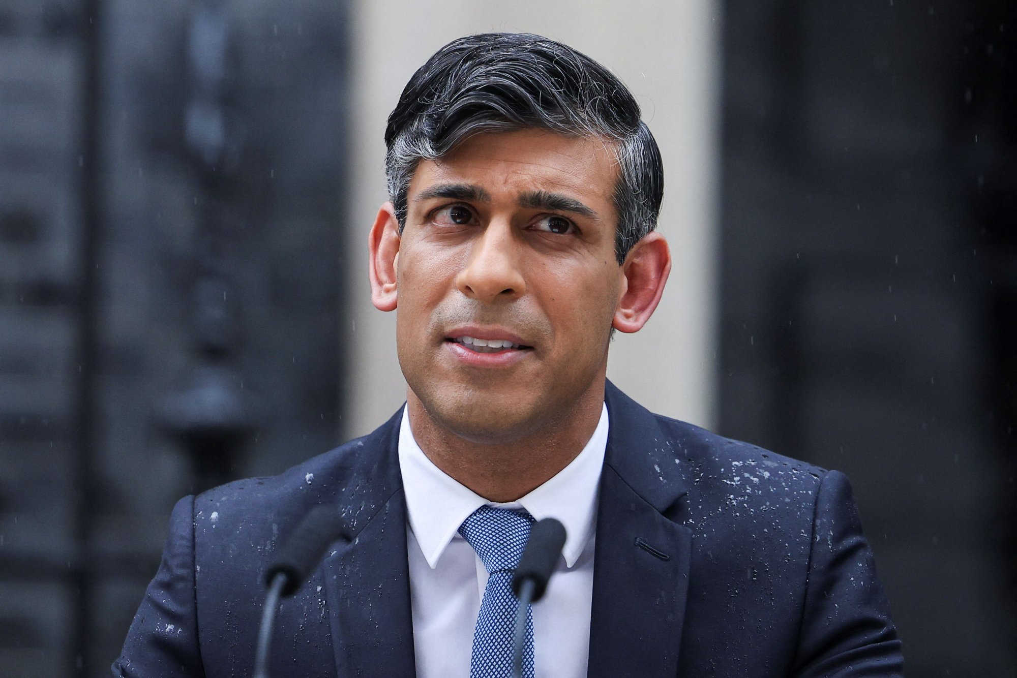 Ο Σούνακ βγήκε στην είσοδο της πρωθυπουργικής κατοικίας στον αριθμό 10 της Ντάουνινγκ Στριτ κάτω από τη βροχή, δίνοντας την τελευταία του ομιλία ως πρωθυπουργός της χώρας, πριν μεταβεί στο παλάτι για να υποβάλει την παραίτησή του στον βασιλιά Κάρολο.