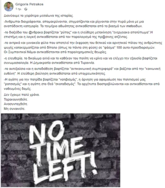 Αναλυτικά η ανάρτηση του Γρηγόρη Πετράκου