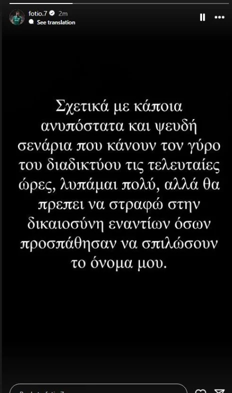 «Σχετικά με κάποια ανυπόστατα και ψευδή σενάρια που κάνουν τον γύρο του διαδικτύου τις τελευταίες ώρες, λυπάμαι πολύ, αλλά θα πρέπει να στραφώ στη δικαιοσύνη εναντίον όσων προσπάθησαν να σπιλώσουν το όνομά μου» έγραψε ο διεθνής επιθετικός.