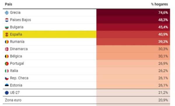 Η Ισπανία στην οποία γίνεται πολύς λόγος για το κόστος κατοικίας στο δημόσιο διάλογο είναι μόλις 4η με 40,9%.